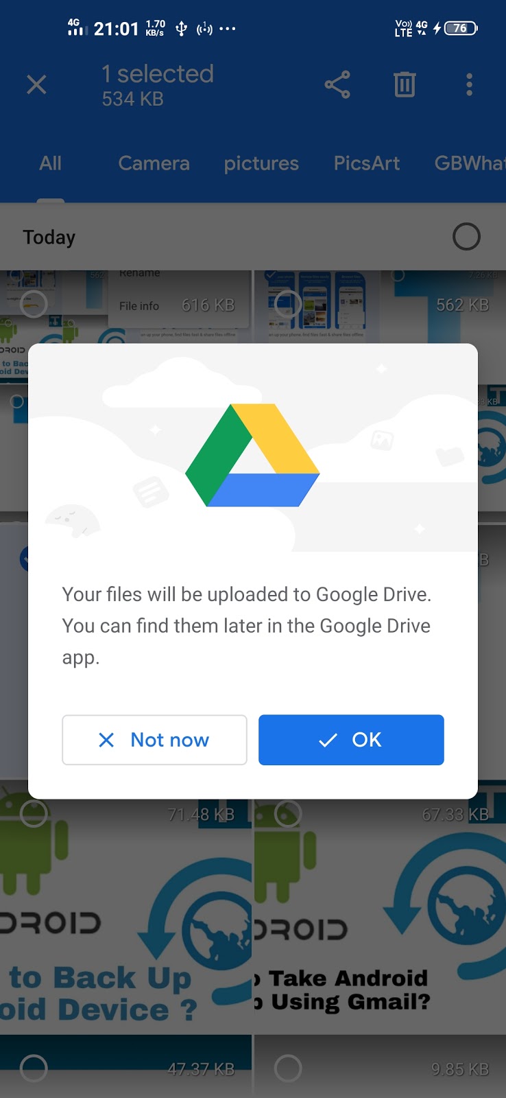 Backup Android device Data using Google drive?